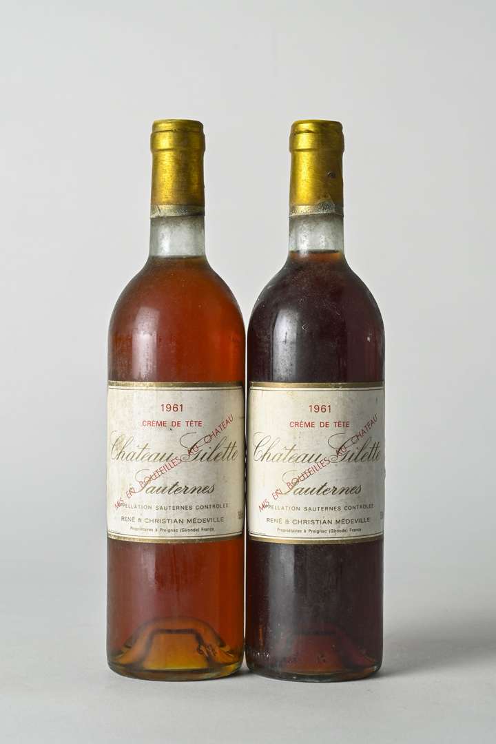 2 B CHÂTEAU GILETTE CRÈME DE TÊTE (1 B.G| e.t.h| c.c| sur-capsules négoce) - 1961 - Sauternes