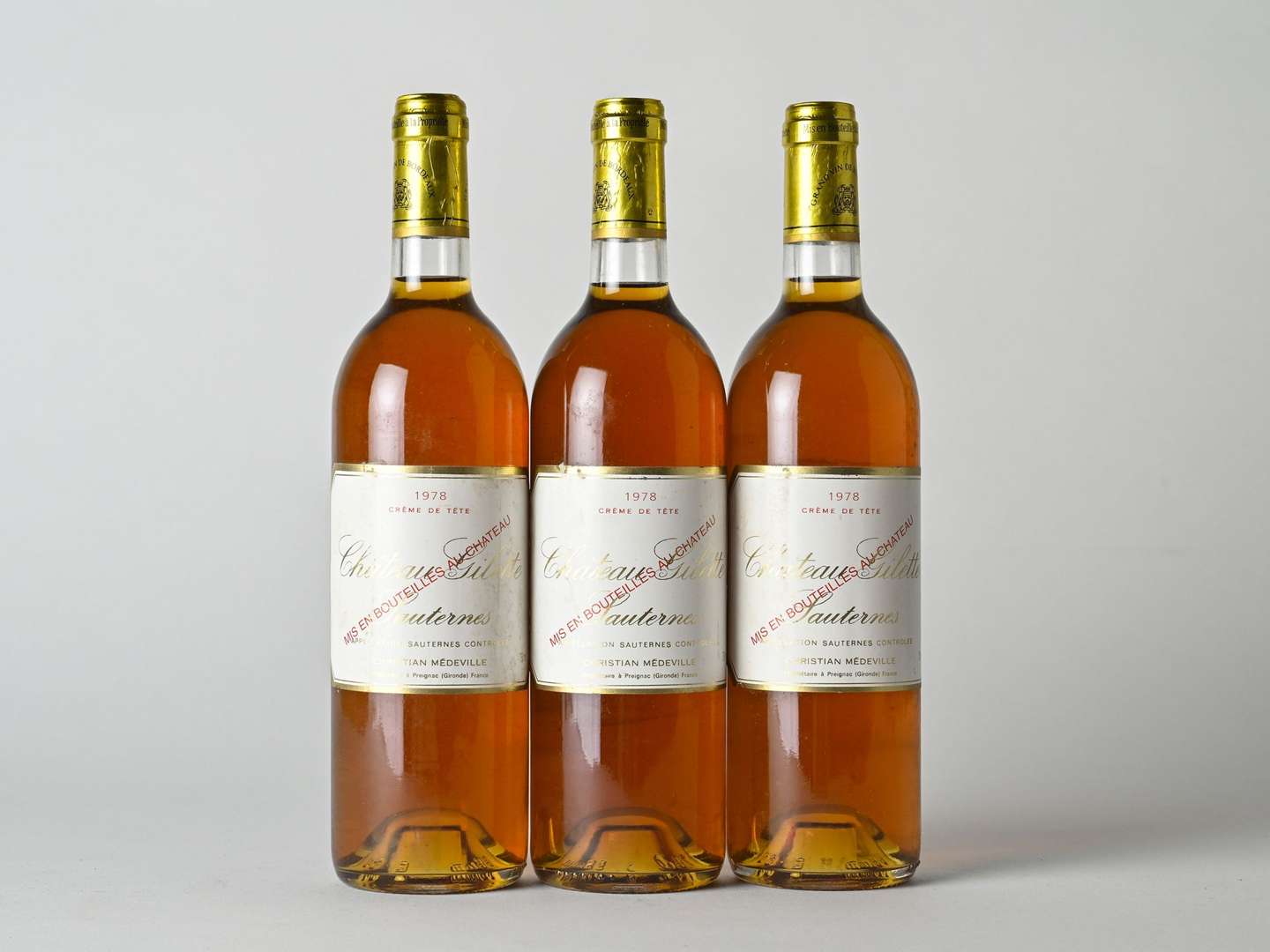3 B CHÂTEAU GILETTE CRÈME DE TÊTE (Caisse Bois d'origine) (1 e.t.h. légères| 2 e.l.a| sur-capsules négoce) - 1978 - Sauternes