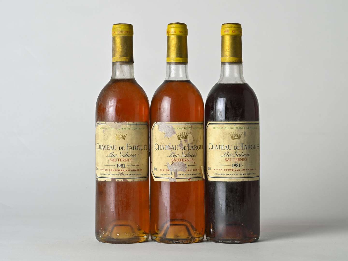 3 B CHÂTEAU DE FARGUES (1 B.G| 1 T.L.B.+| 1 H.E.+| e.t.a. avec 1 millésime partiellement lisible| c.s.) - 1981 - Sauternes