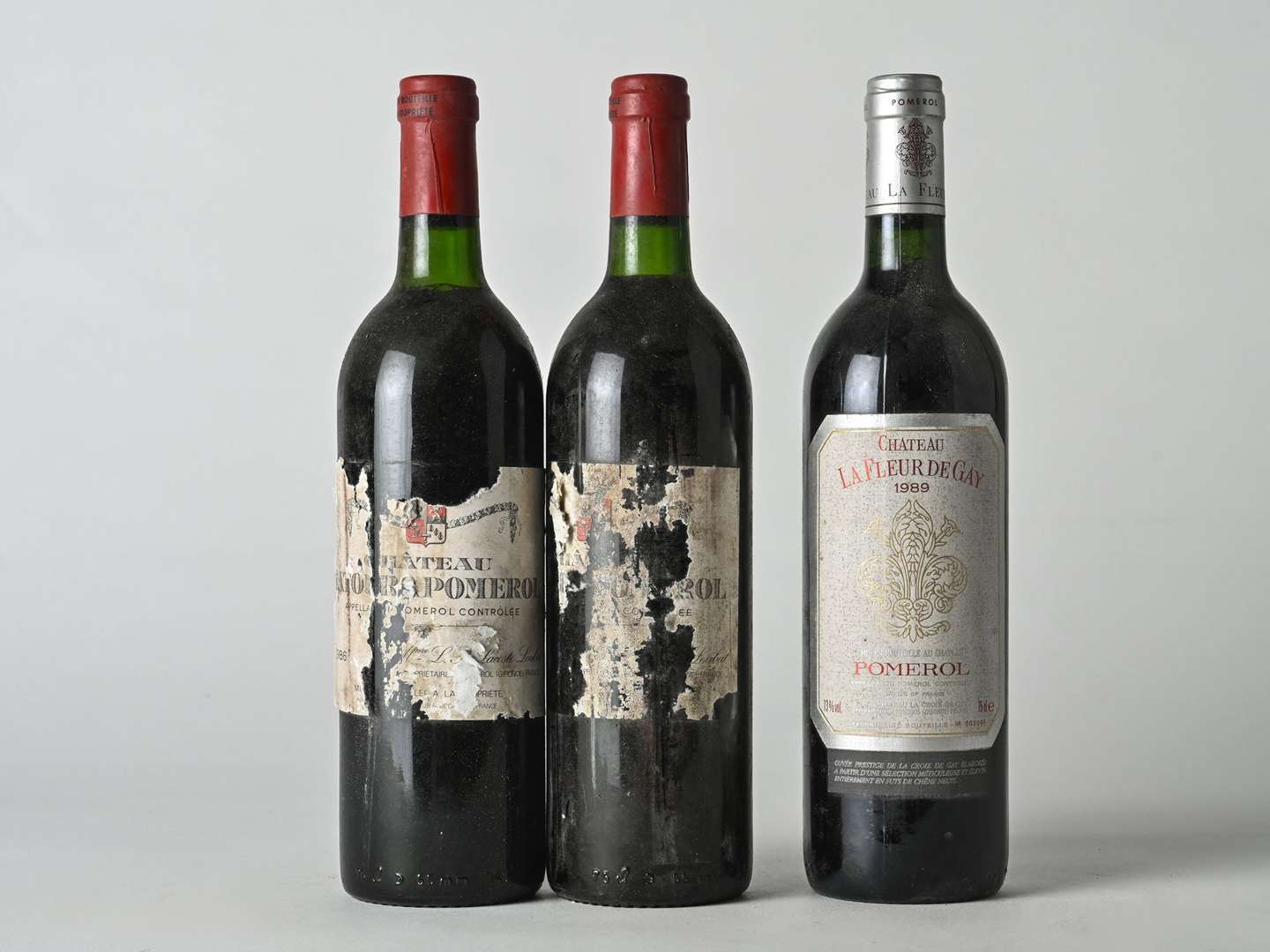 2 B CHÂTEAU LATOUR (1 B.G| 1 T.L.B| e.q.i. fragiles avec 1 millésime illisible) - 1986 - Pomerol