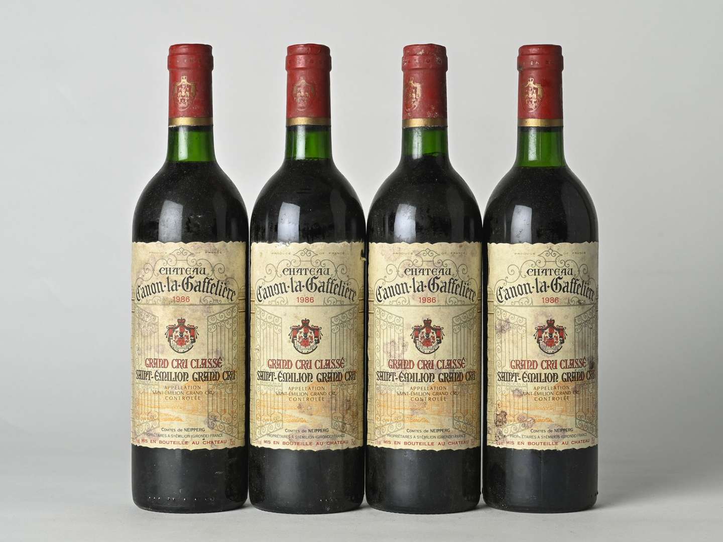 4 B CHÂTEAU CANON-LA-GAFFELIÈRE (2 B.G| 1 T.L.B.+| e.t.h. légères dont 1 e.a| 1 c.l.a.) - 1986 - GCC1B Saint-Emilion