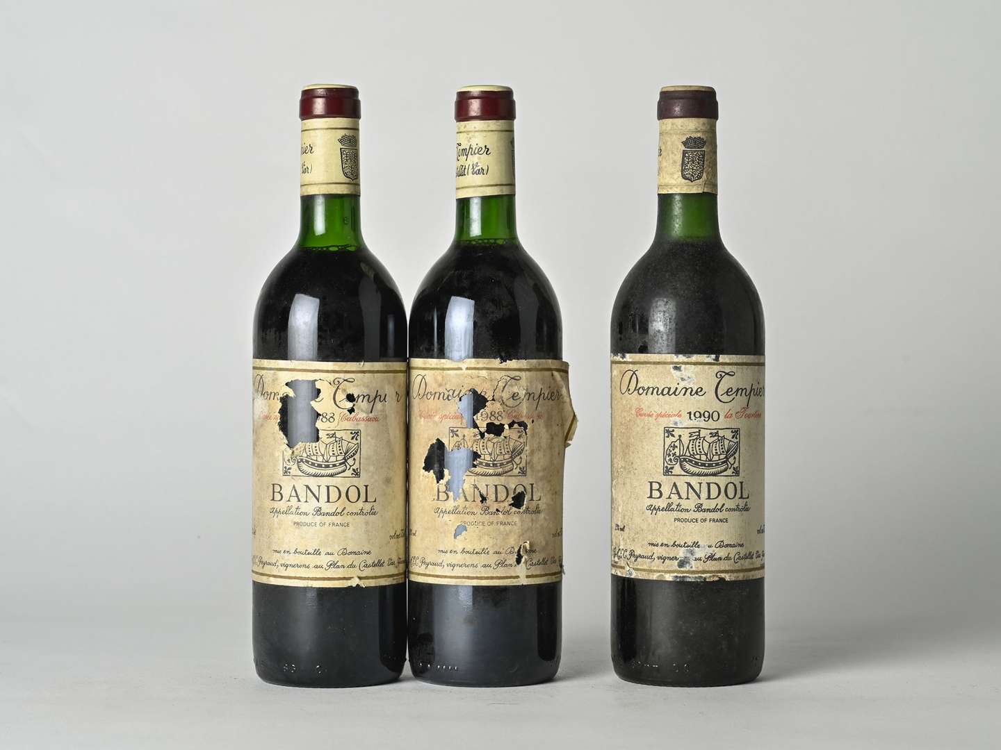 2 B BANDOL CUVÉE SPÉCIALE CABASSAOU (1 B.G| 1 T.L.B| e.q.i. fragiles avec millésimes partiellement lisibles) - 1988 - Domaine Tempier