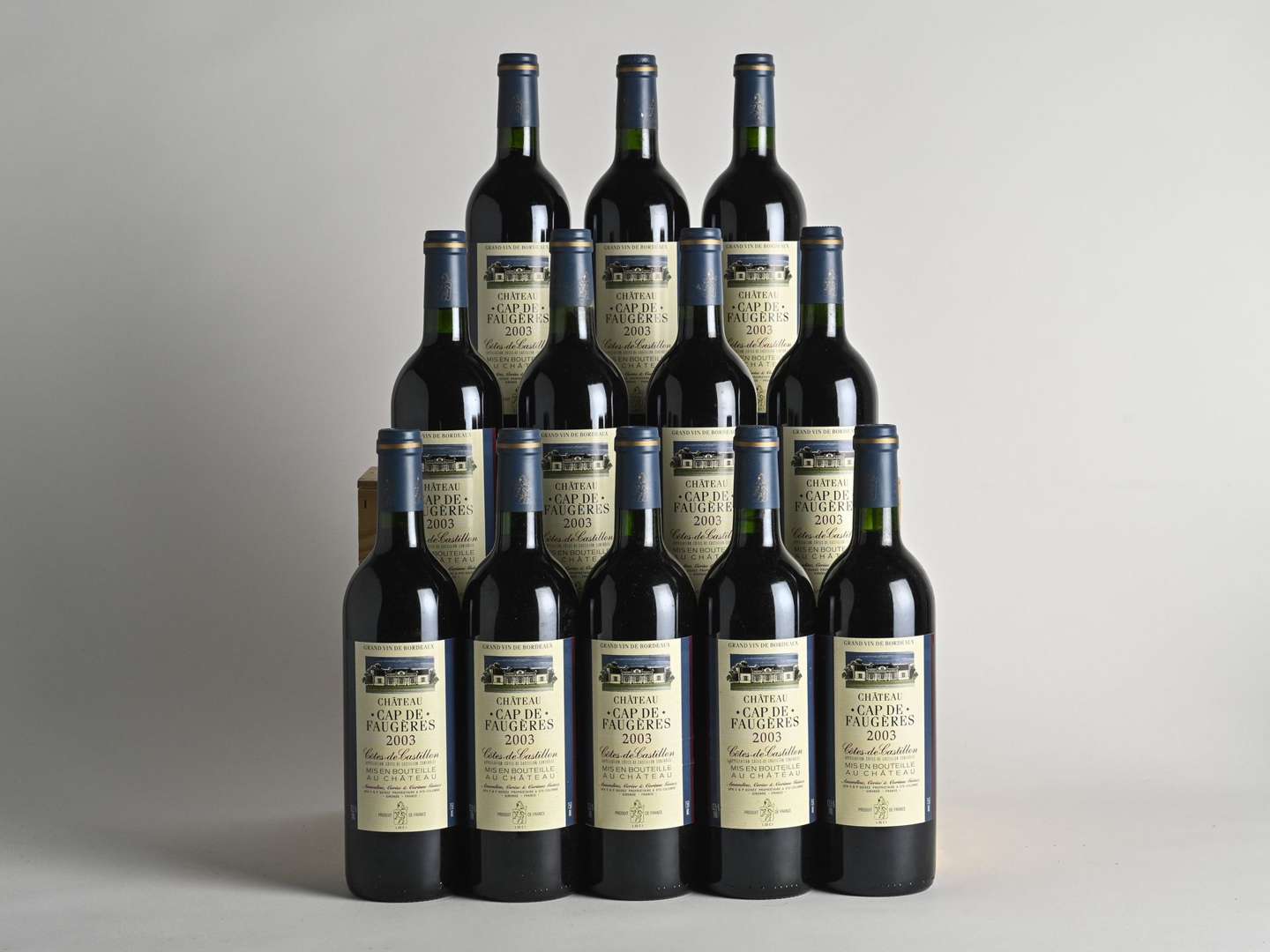 12 B CHÂTEAU CAP DE FAUGÈRES (Caisse Bois d'origine) (1 e.a.) - 2003 - Côtes de Castillon
