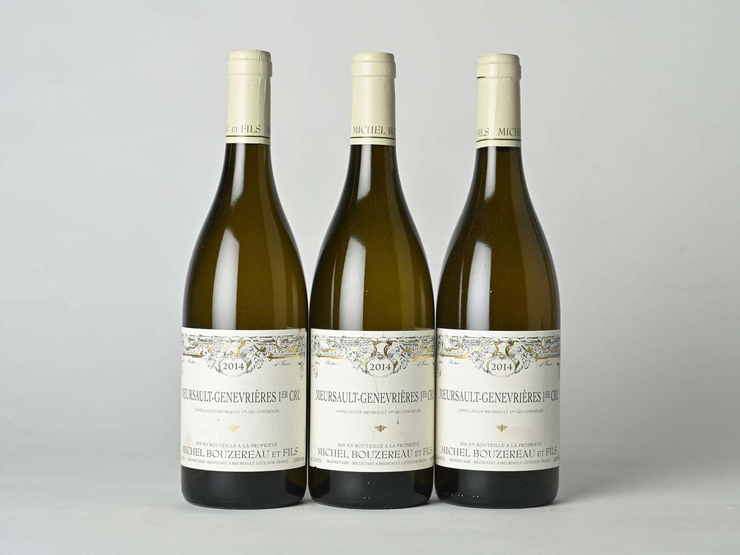 3 B MEURSAULT-GENEVRIÈRES (1er Cru) (2 e.l.s. avec 1 accroc| 1 e.a.) - 2014 - Domaine Michel Bouzereau