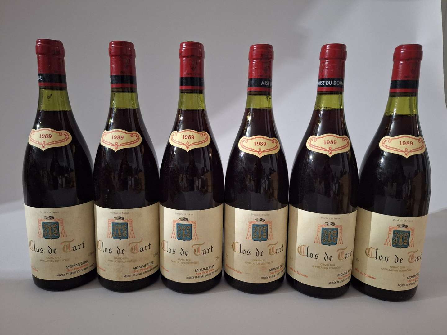 6 B CLOS DE TART (Grand Cru) (Caisse Bois d'origine avec inscriptions manuscrites) (4 à 2 et 1 à 2,5 cm| 4 e.t.h. légères à e.t.h.) - 1989 - Mommessin
