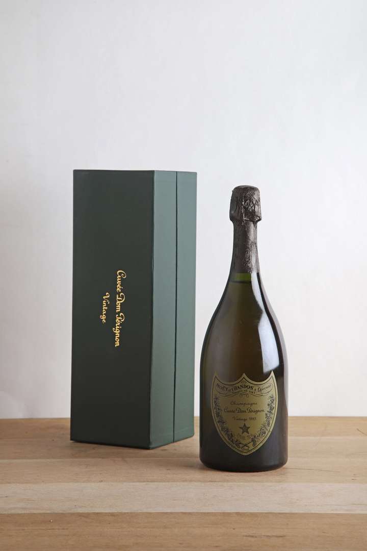 1 B CHAMPAGNE DOM PÉRIGNON (Coffret d'origine) (coiffe abîmée) - 1985 - Mo