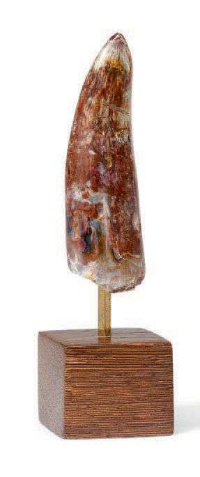 (dinosaure) fossilisée de couleur rouge bordeaux.