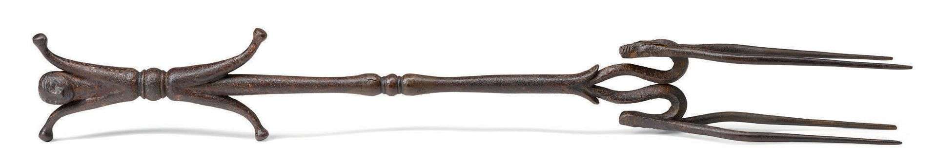 en fer forgé à long manche de forme balustre.