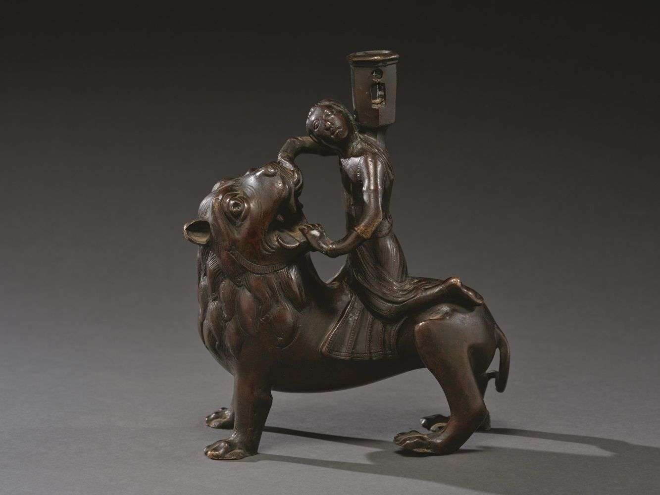 Walters Art Museum [54.784], ce dernier portant encore les traces d'une belle dorure dont il est permis de penser que notre exemplaire en était autrefois également pourvu. De la plus insigne rareté, il semblerait que notre chandelier soit à ce jour le seul connu détenu en main privée.