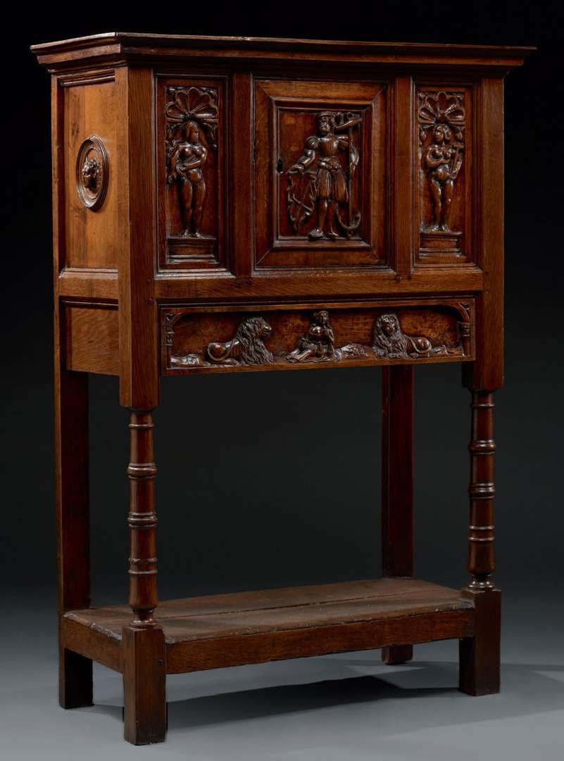 Ce meuble faisait autrefois partie des collections du Musée féodal du château de Wernigerode (Allemagne) [A.V.Wgd.22].