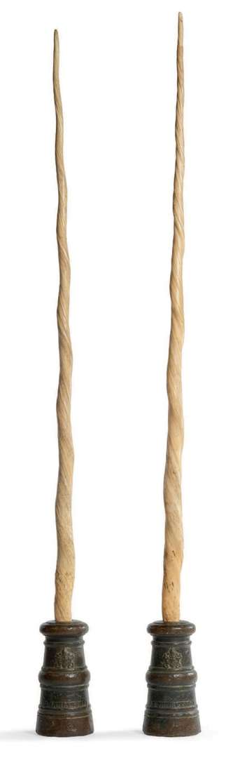Les armoiries pontificales et la signature d'Alibert, fondeur actif en Avignon à la fin du XVIIe siècle et au début du XVIIIe siècle induisent une provenance pontificale des montures avec un certain degré de certitude.