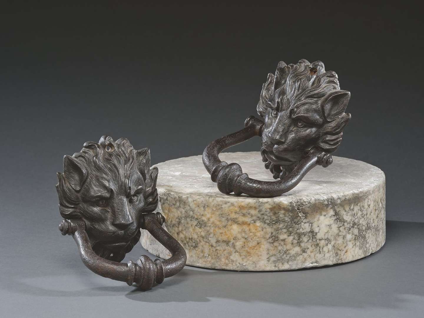 PAIRE DE HEURTOIRS AUX MUFLES DE LIONS