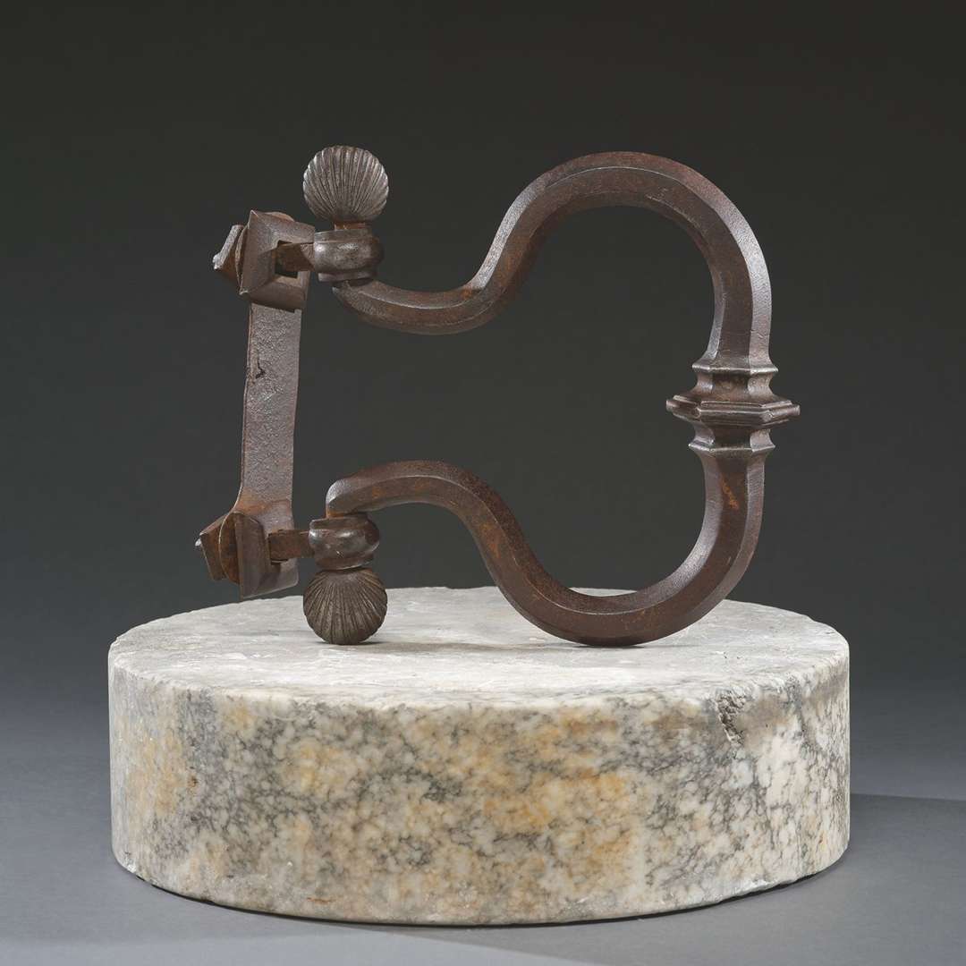 en fer forgé, les accolades à sections hexagonales. Noeud central, les accolades terminées par des coquilles. Fixation à deux tiges.