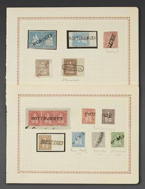 Postes locales, cantonales et fédérales. Ensemble de timbres-poste oblitérés des diverses émissions, entre 1845 et 1900 et de l'émission "Helvetia debout" Oblitérations et nuances. B. et T.B