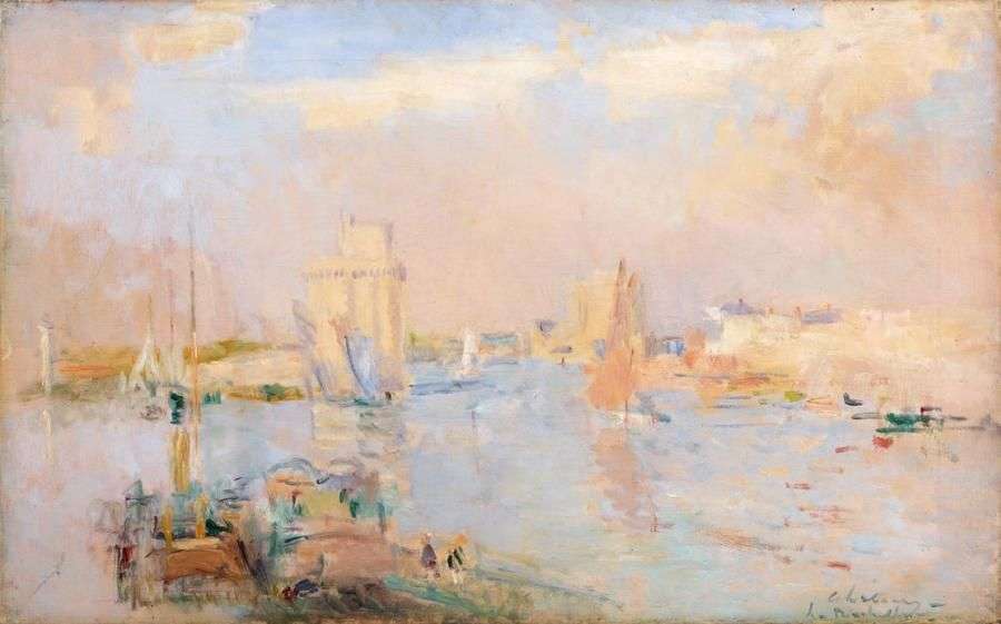 La Rochelle. Le Bassin du port, ciel très lumimeux Huile sur toile, signée et située en bas à droite 38 x 61 cm - 15 x 24 in. Oil on canvas, signed and situated lower right Provenance: Vente du 5 mars 1920, n°199 bis Albert Lebourg, Galerie Raphaël Gérard, Paris, 1940, n°32 Collection privée, France Bibliographie: Léonce Bénédicte, Albert Lebourg, éditions Galeries Georges Petit, 1923, n°372 Albert LEBOURG Les tableaux d'Albert Lebourg que nous présentons à la vente offrent un parfait condensé de ce que furent le talent et la vie de l'artiste. Entre 1872 et 1877, il vit à Alger, où il enseigne le dessin et dès 1877, il se lie avec Monet, Pissarro et Degas. Ce séjour en Algérie va libérer sa créativité artistique et développer sa palette. A son retour d'Algérie, il sillonne la France, et notamment ses ports dont l'activité le passionne: Dieppe, Honfleur, La Rochelle mais également l'Auvergne, région à laquelle il sera profondément attaché. Néanmoins, ses sujets de prédilection resteront la Seine et la Normandie, thèmes indissociables de son oeuvre. Au regard de son amour de la nature, de la sensibilité de sa touche, et de la clarté de sa palette chromatique, il s'inscrit dans la droite ligne de la tradition de la peinture de paysage ainsi que dans la lignée des recherches impressionnistes. Il exposera d'ailleurs avec eux à partir de 1880. Il expérimente également le travail sur le motif, et notamment les changements sous l'effet de la lumière, l'eau et ses reflets, mais, bien qu'il assimile les leçons de l'impressionnisme, sa facture restera relativement «traditionnelle». Les oeuvres incluses dans la vente témoignent de la fluidité de sa touche mais aussi de son travail sur la lumière et le rendu atmosphérique. Elles nous permettent d'appréhender le talent de cet artiste qui écrivit: «je suis impressionniste en ce sens que je suis impressionné par le moment présent». The paintings by Albert Lebourg presented are the perfect embodiment of the artist's life and talent.