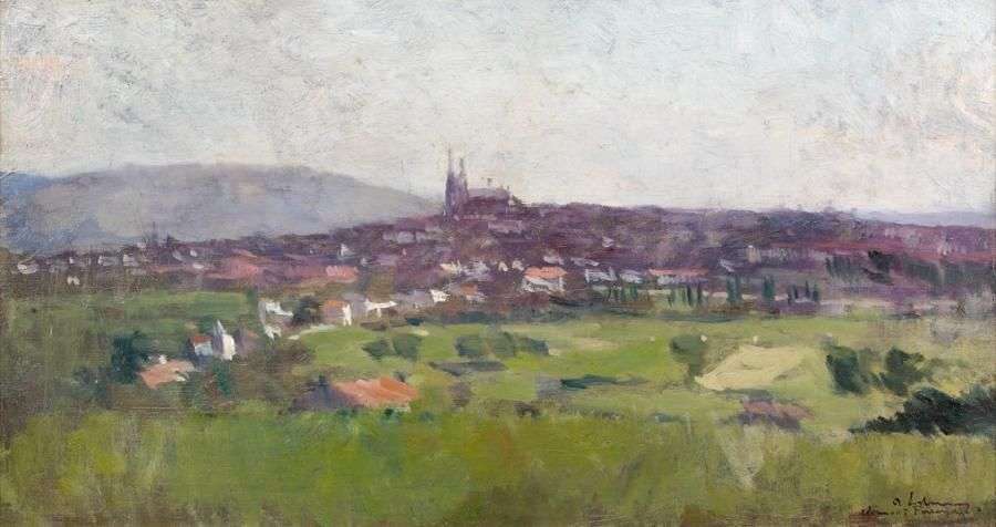 Vue de Clermont-Ferrand Huile sur toile, signée et située en bas à droite 35 x 65 cm - 133/4 x 251/4 in. Oil on canvas, signed and situated lower right Provenance: Famille de l'artiste Collection privée, France Bibliographie: Une lettre rédigée par le Wildenstein Institute en date du 1er juin 1990 indiquant que cette oeuvre a pris place dans les dossiers préparatoires au catalogue raisonné du peintre sera remise à l'acquéreur. Référence d'archives Wildenstein 90.5.31/822