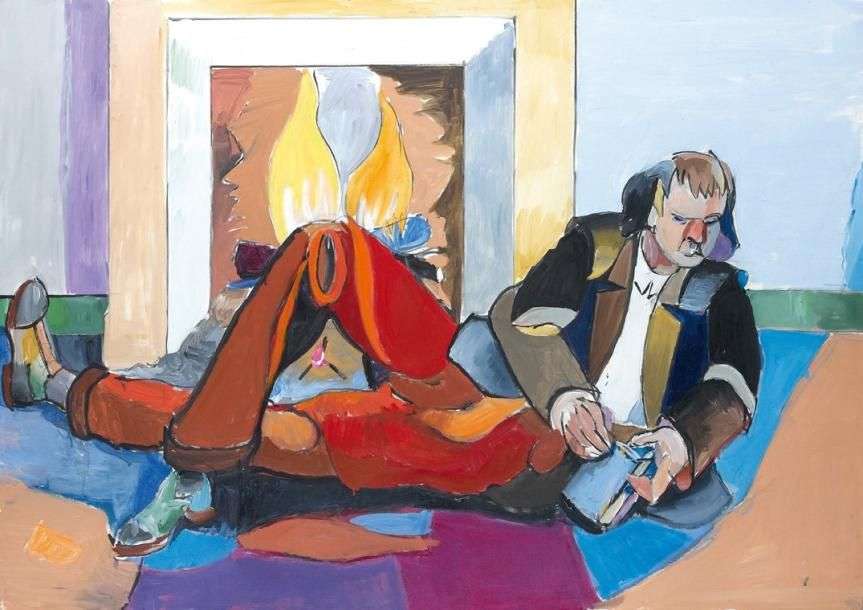 Gisant au feu, 1982 Huile sur toile, signée, titrée et datée au dos 114 x 162 cm - 443/4 x 632/4 in Oil on canvas, signed, titled and dated on reverse