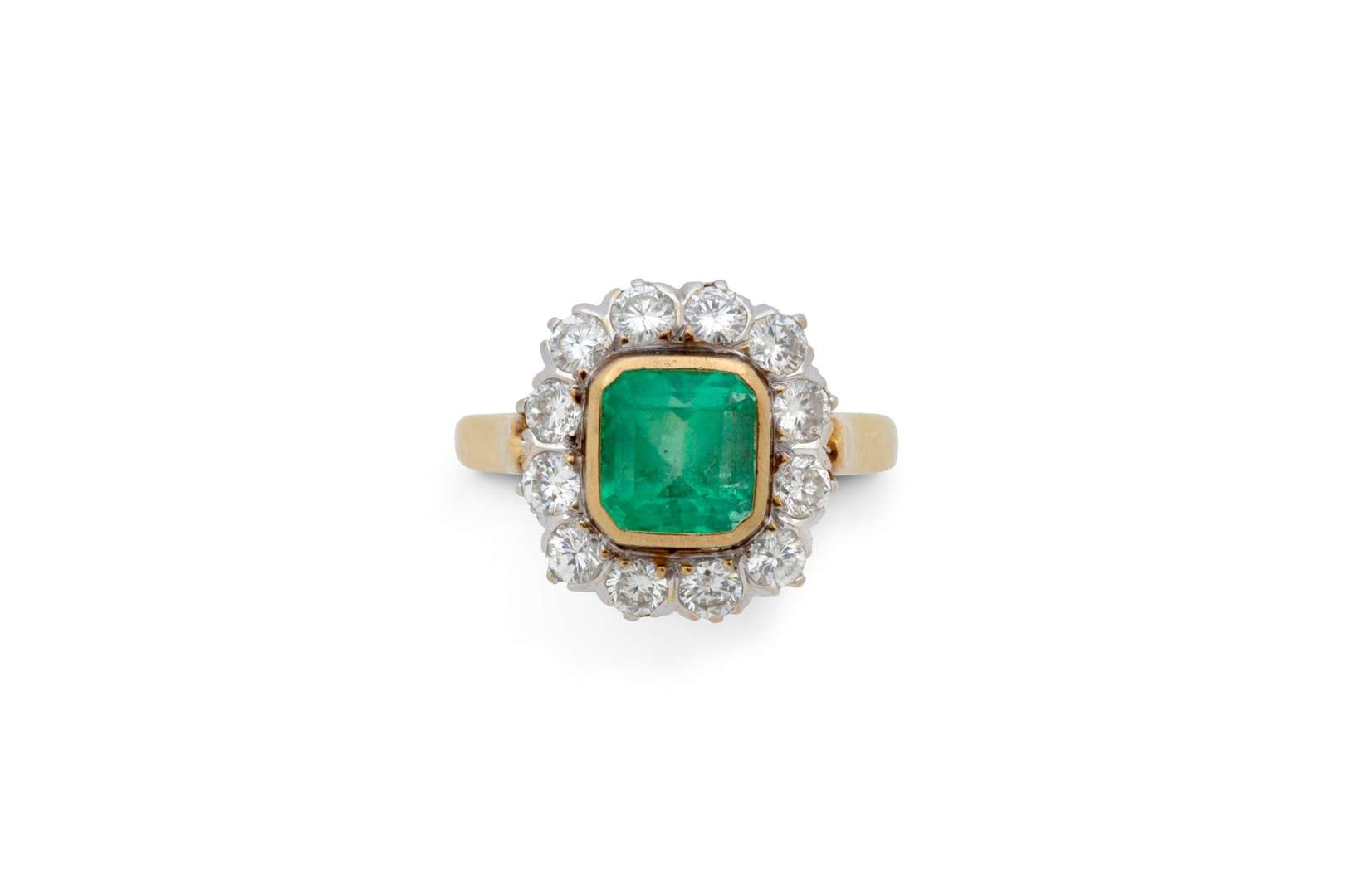 Emeraude rectangulaire à pans coupés, diamants taille brillant