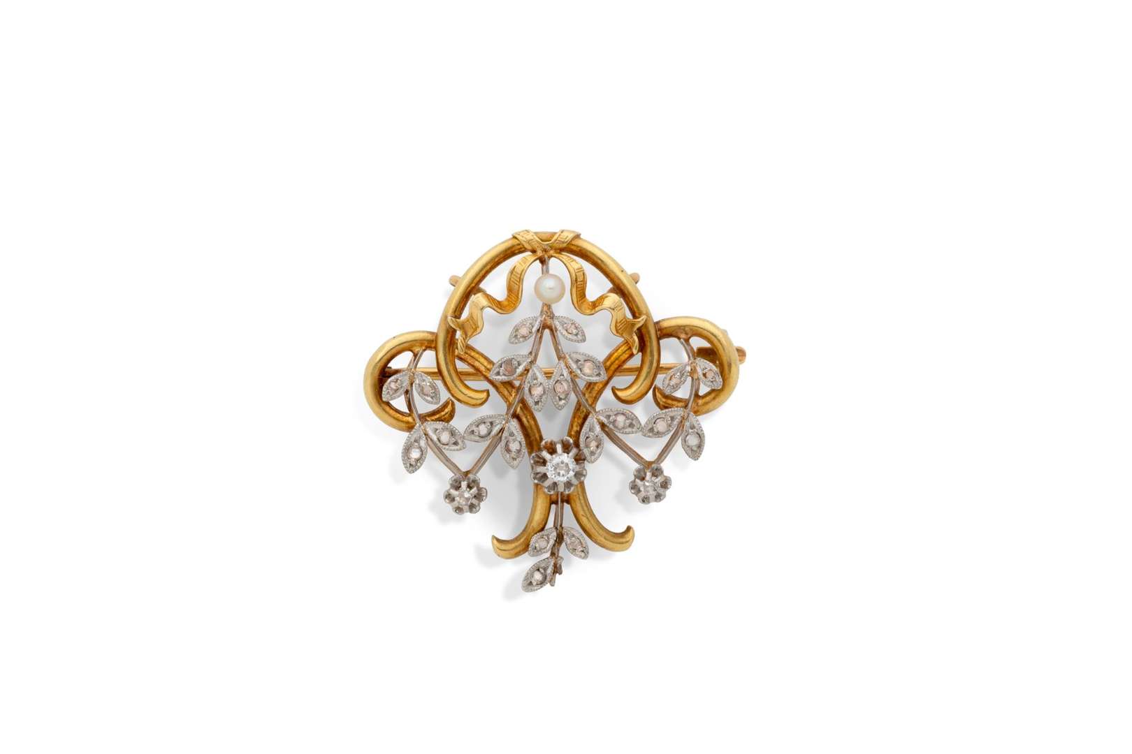 Diamants taille rose et taille ancienne, perle et or 18k (750)