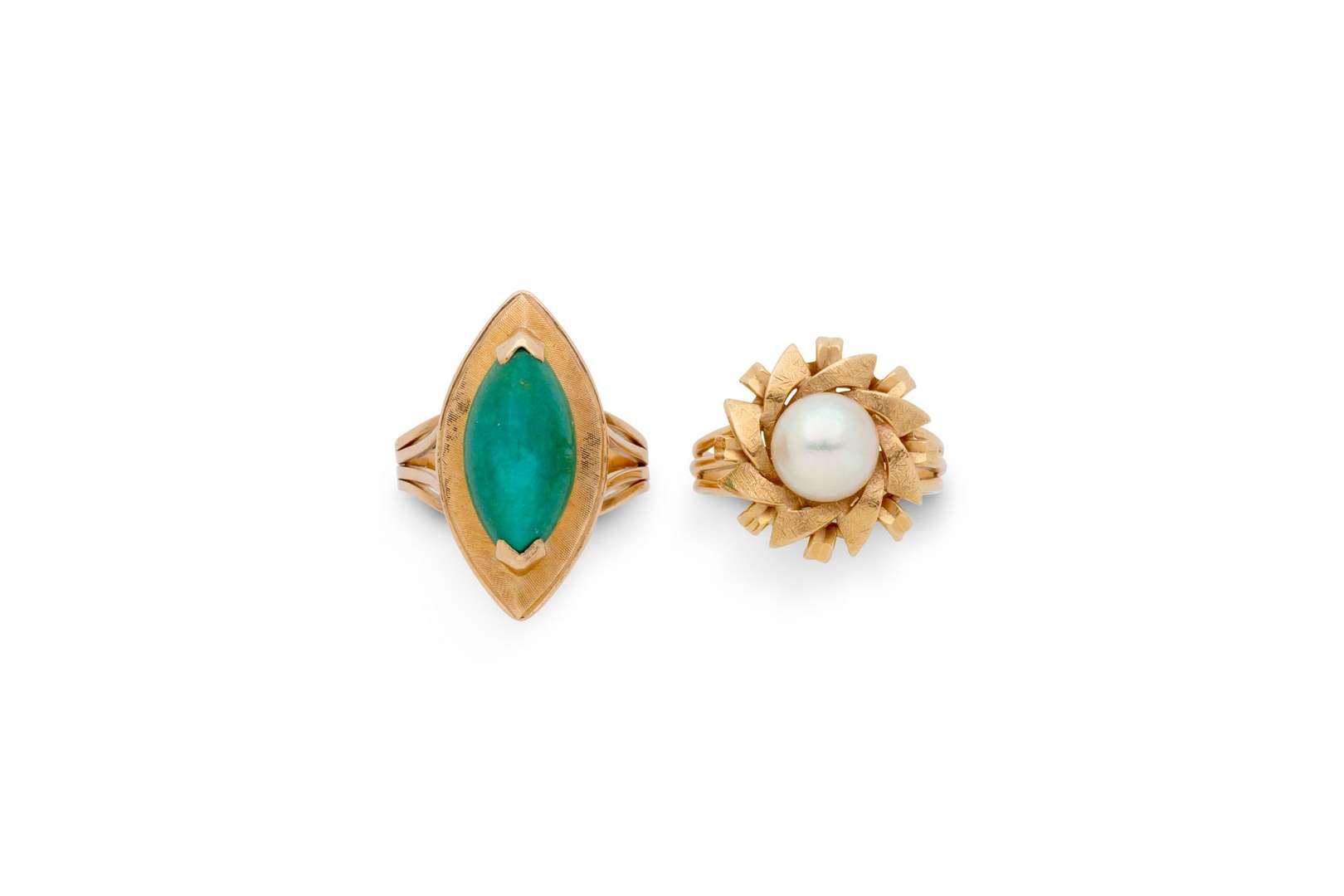 - Bague, perle de culture et or 18k (750). Td. : 51 - Pb. : 4.4 gr