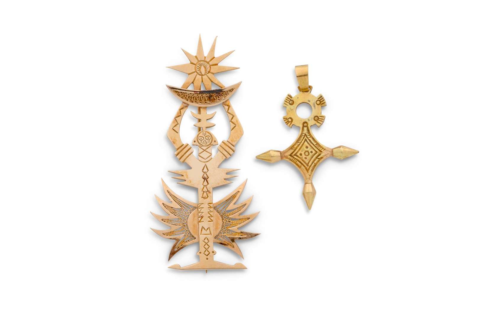 - Croix d'Agadez en or 18k (750). Dim. : 5 x 3 cm - Pb. : 9.3 gr