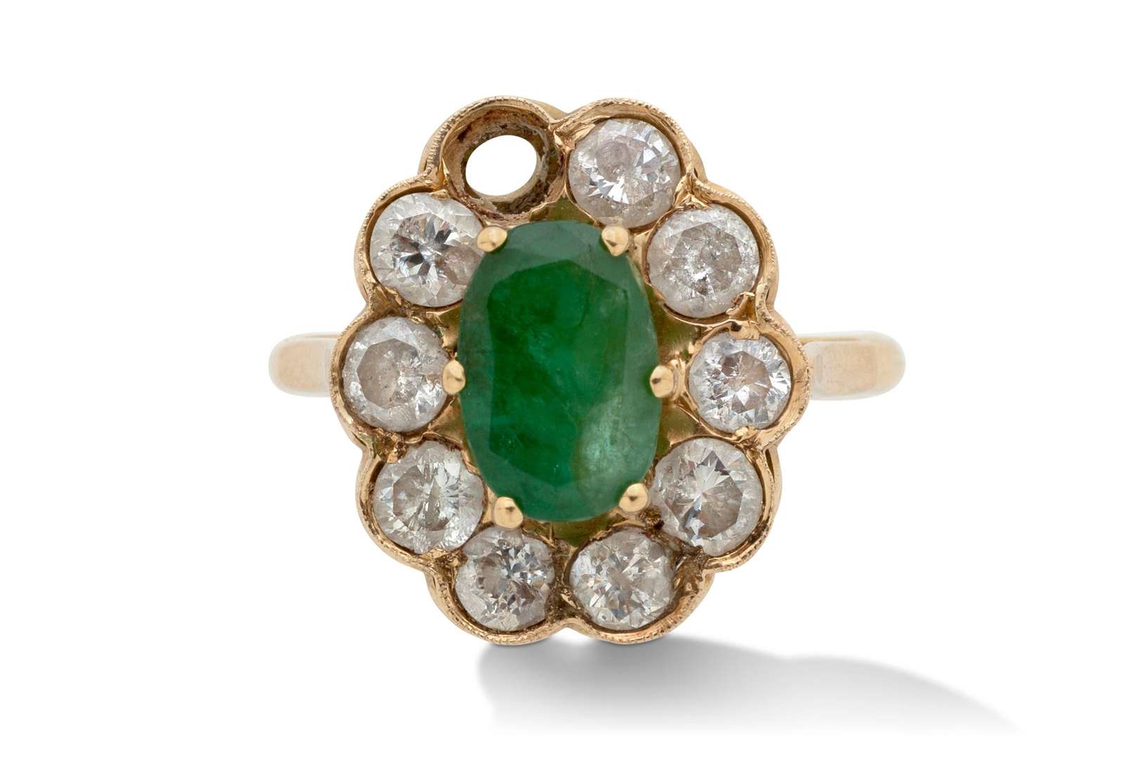 Emeraude oval et diamants taille brillant
