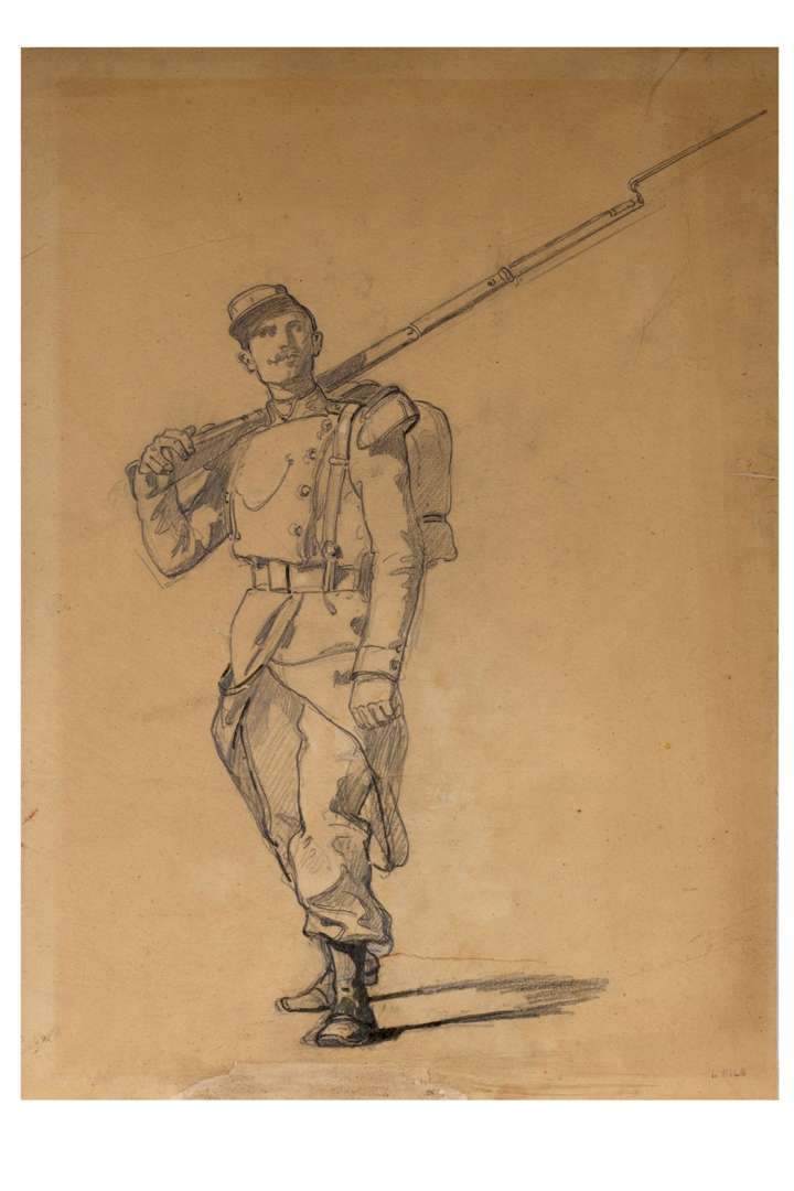 Militaire debout au fusil à baïonnette