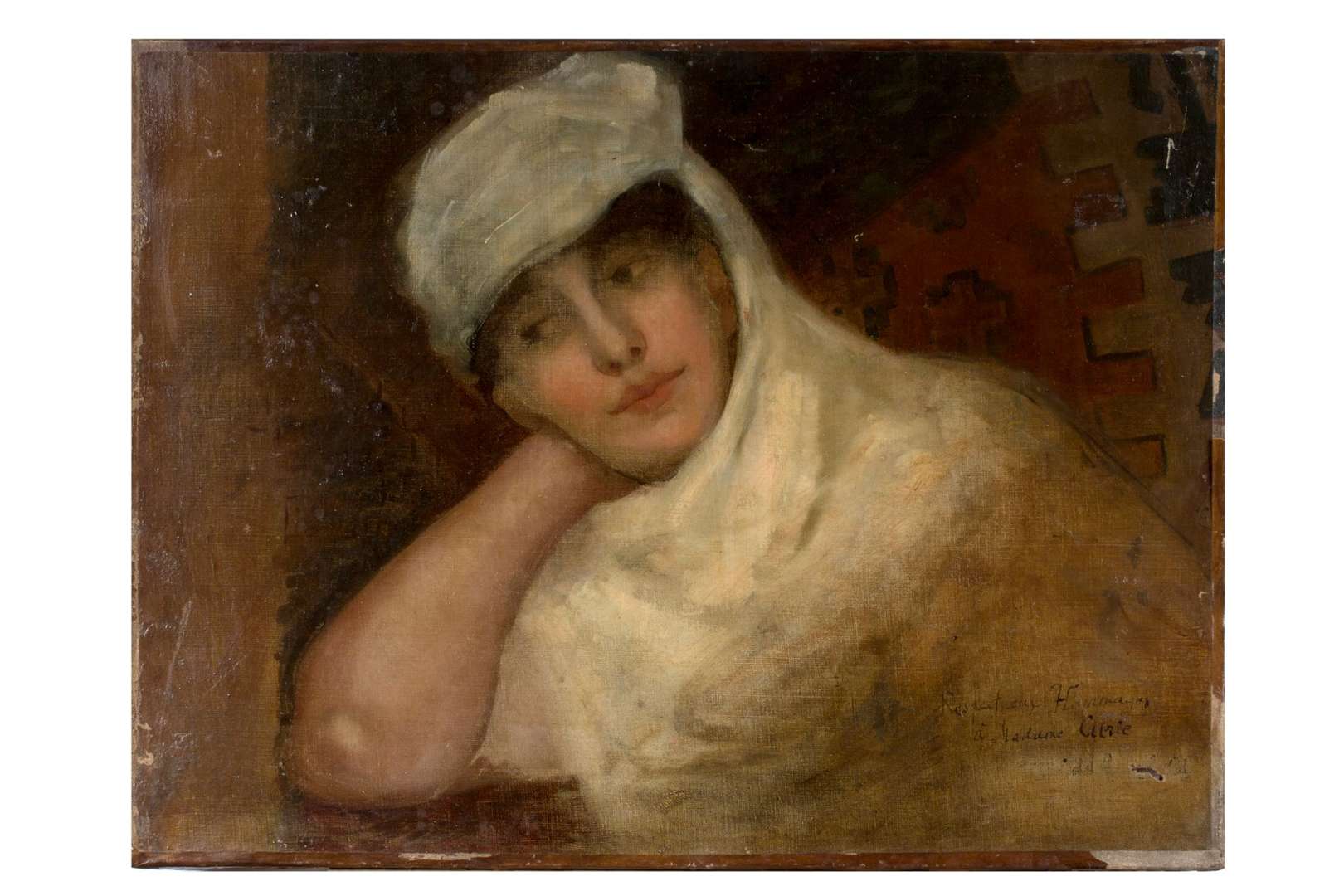 Oil on canvas, erased signature and dedicated 'Respectueux hommages/à Madame Curie' lower right
