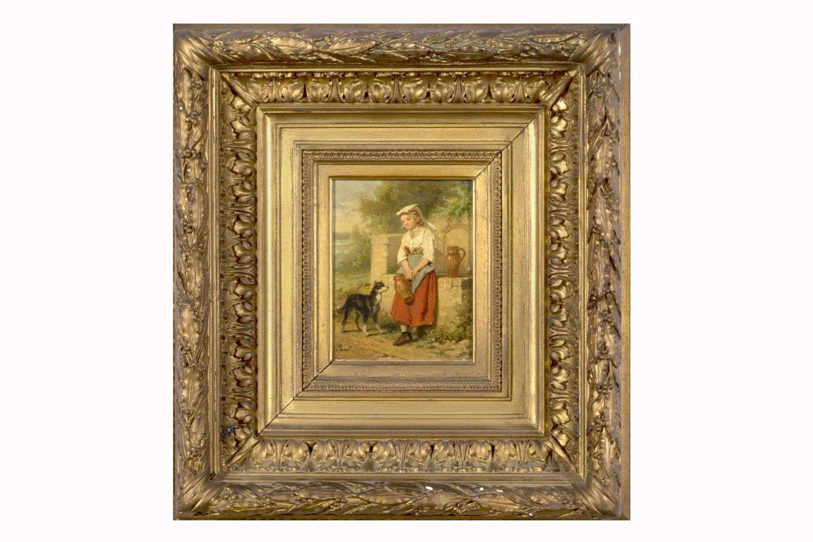 Fillette au puits avec un chien