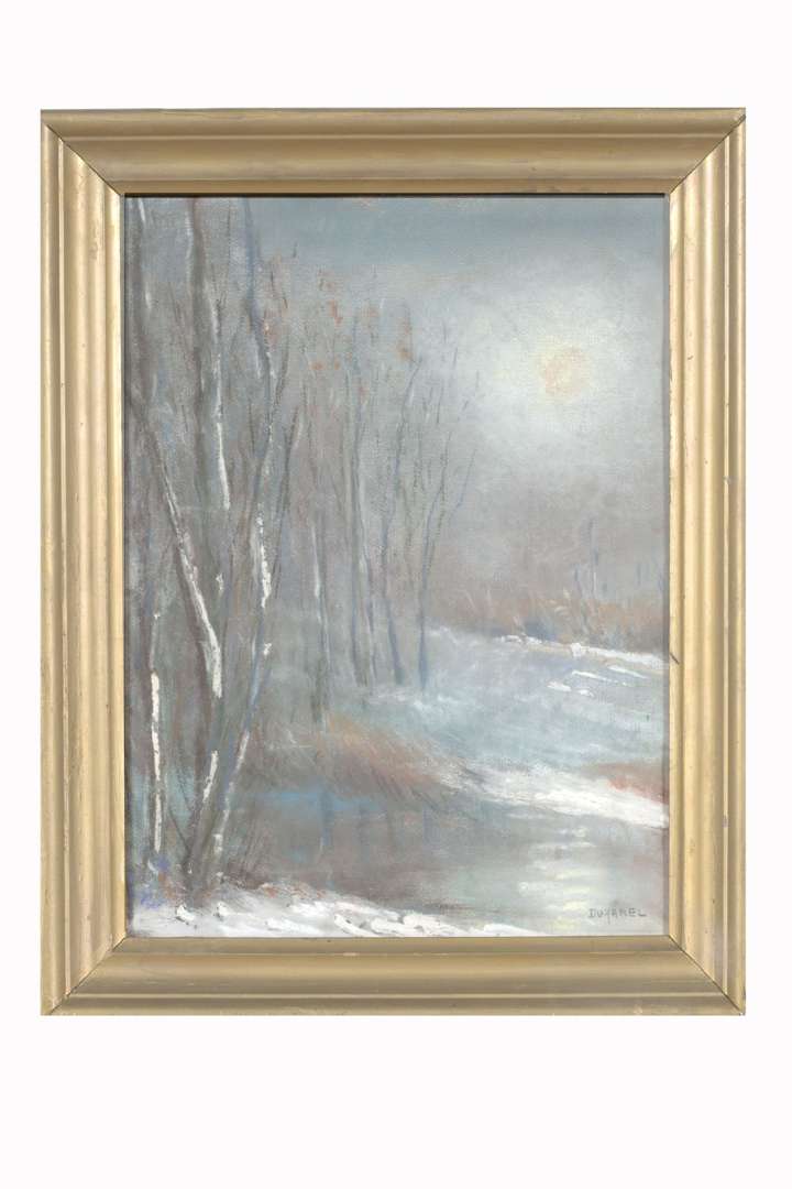 Mixed media on paper, signed 'Duhamel' lower right, located on the back of the frame