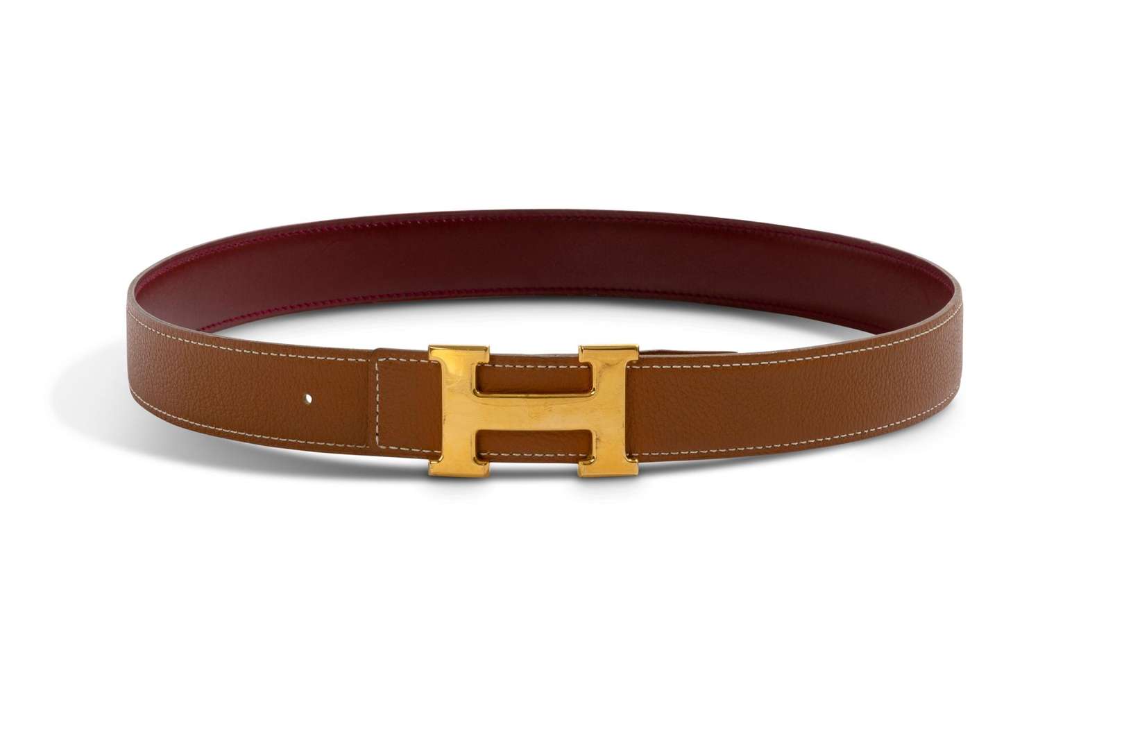 Ceinture en cuir réversible marron surpiqures crème et bordeau
