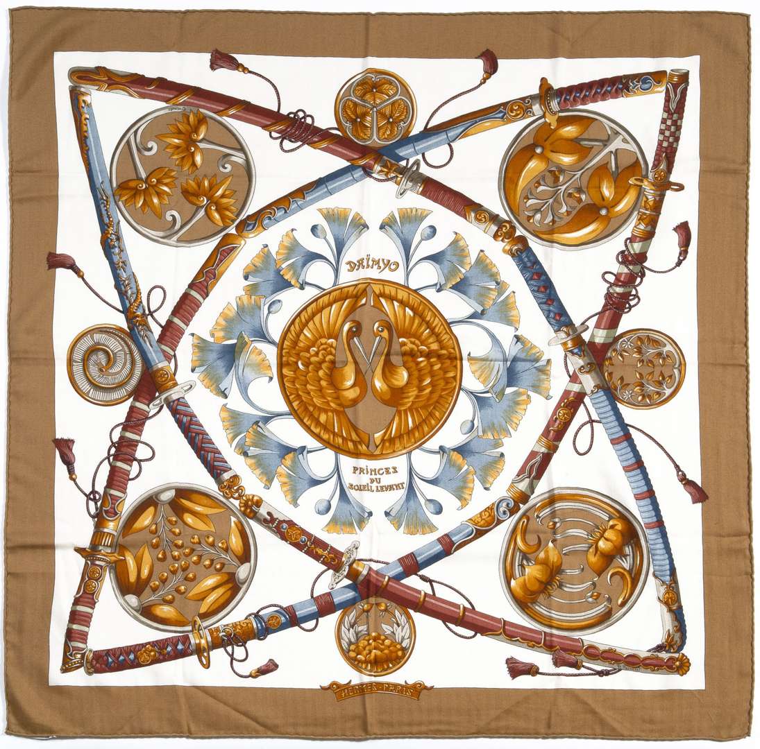 Carré cachemire et soie dessiné par François Faconnet, dans les tons de bruns.