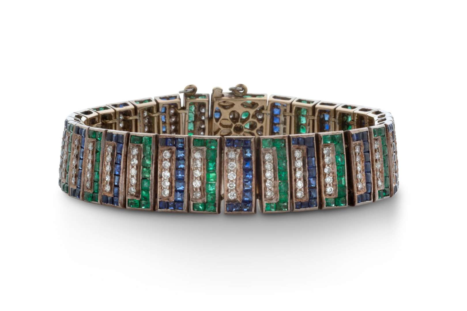 Diamants taille brillant, émeraudes, saphirs