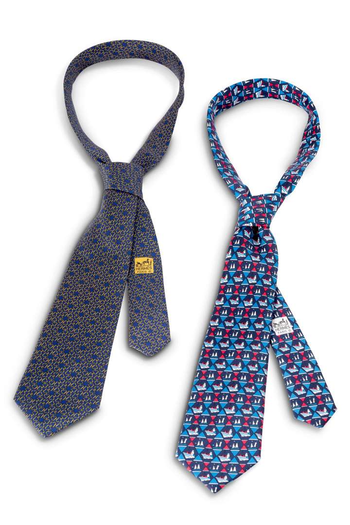 - Cravate en soie "bateaux" dans les tons de bleu et rose. Dim. : 146 x 8 cm env.