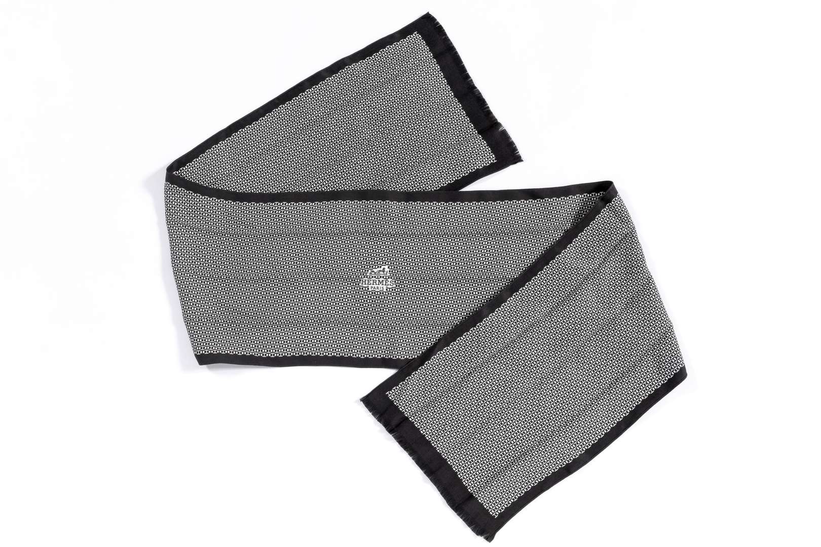 Foulard de soie imprimé monogrammé "H" dans les tons de gris