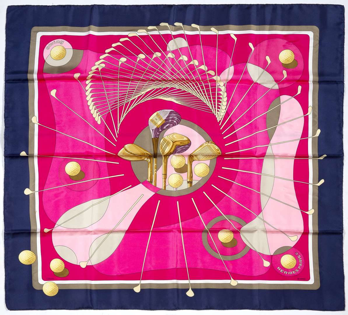 Carré de soie dessiné par Julie Abadie dans les tons de rose et bleu