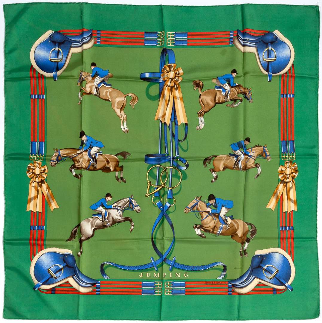 Carré de soie dessiné par Philippe Ledoux, dans les tons de vert.