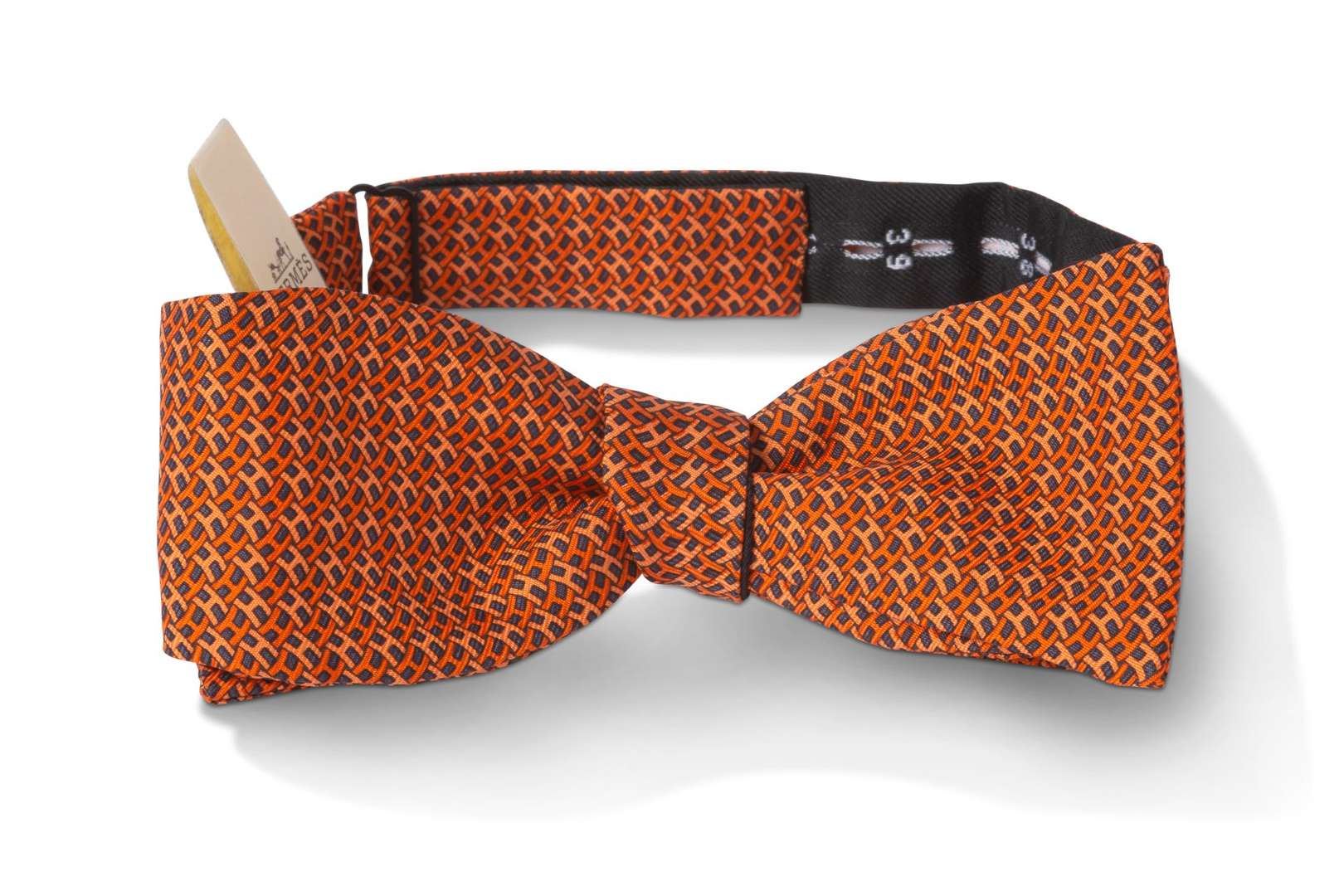 Noeud papillon de soie imprimé monogrammée "H" dans les tons orangés