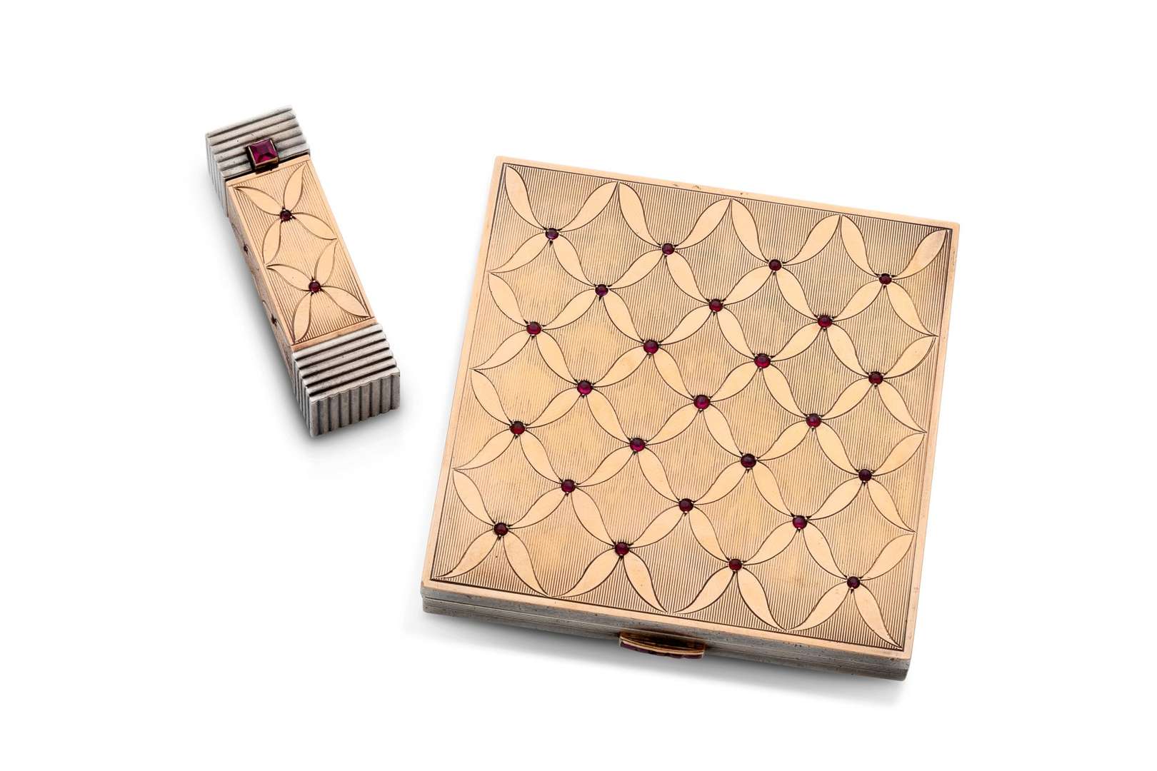 Rouge à lèvres : 5 x 1.5 cm - Poudrier : 7.5 x 7.5 cm env.