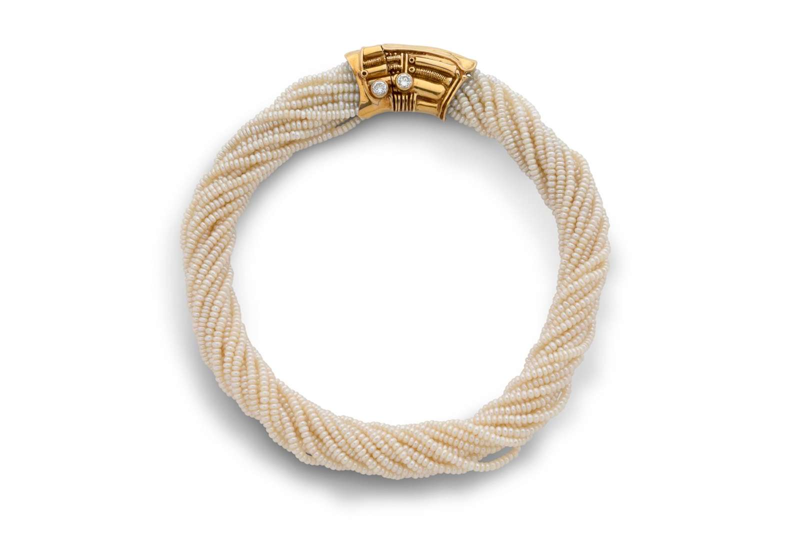 Collier de perles supposées d'eau douce, diamants ronds taille brillant