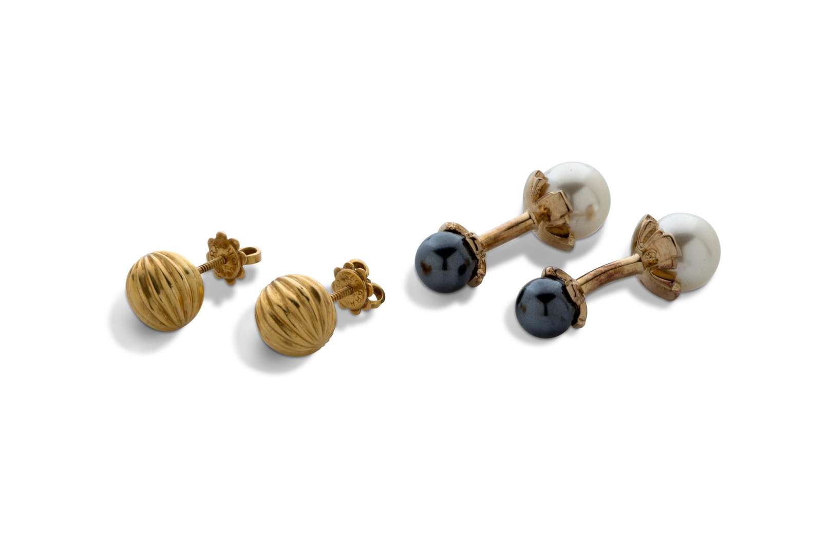 On y joint une paire de boutons de manchette en perles de culture, hématite et métal doré