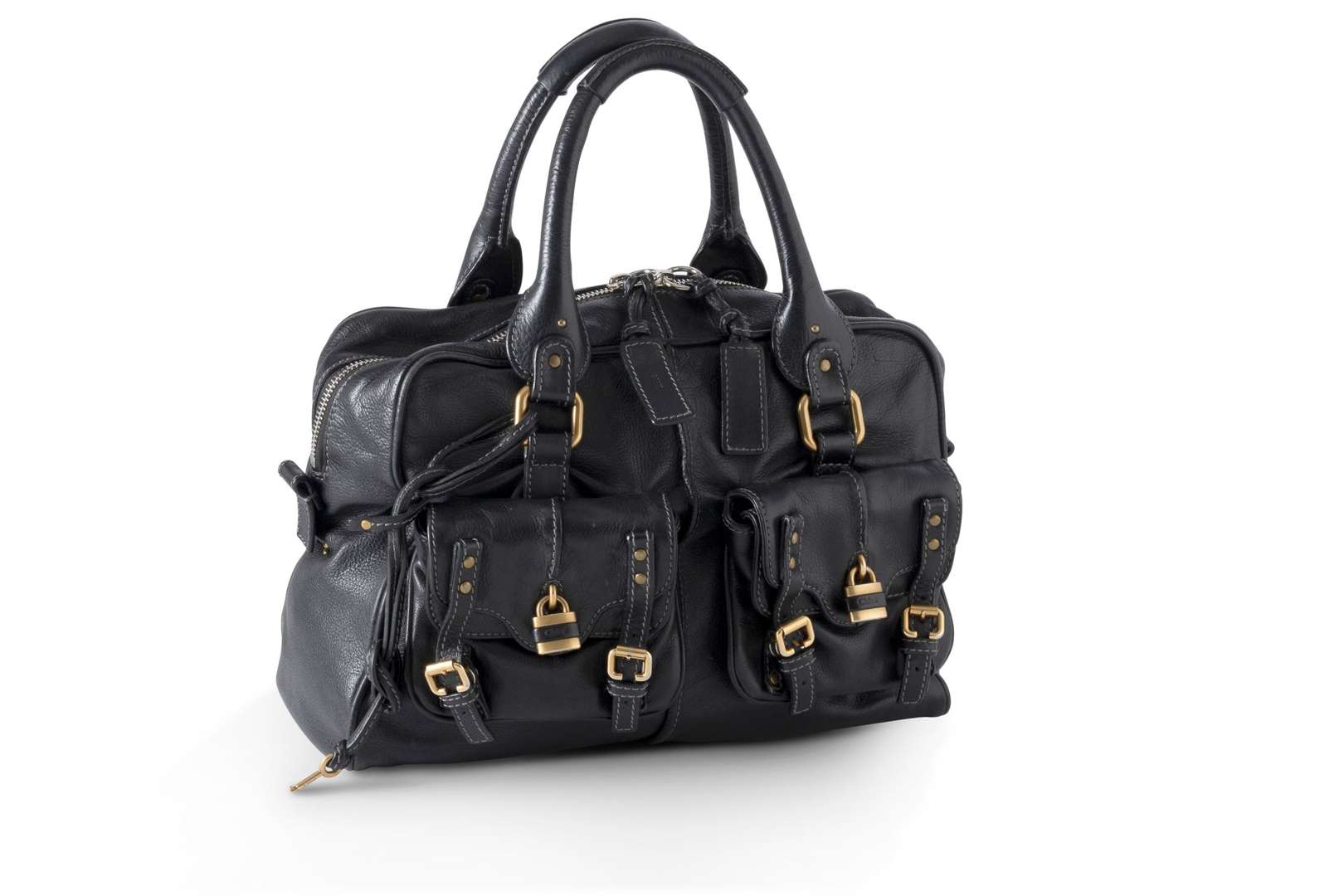 A l'avant du sac, deux poches avec lanières et cadenas
