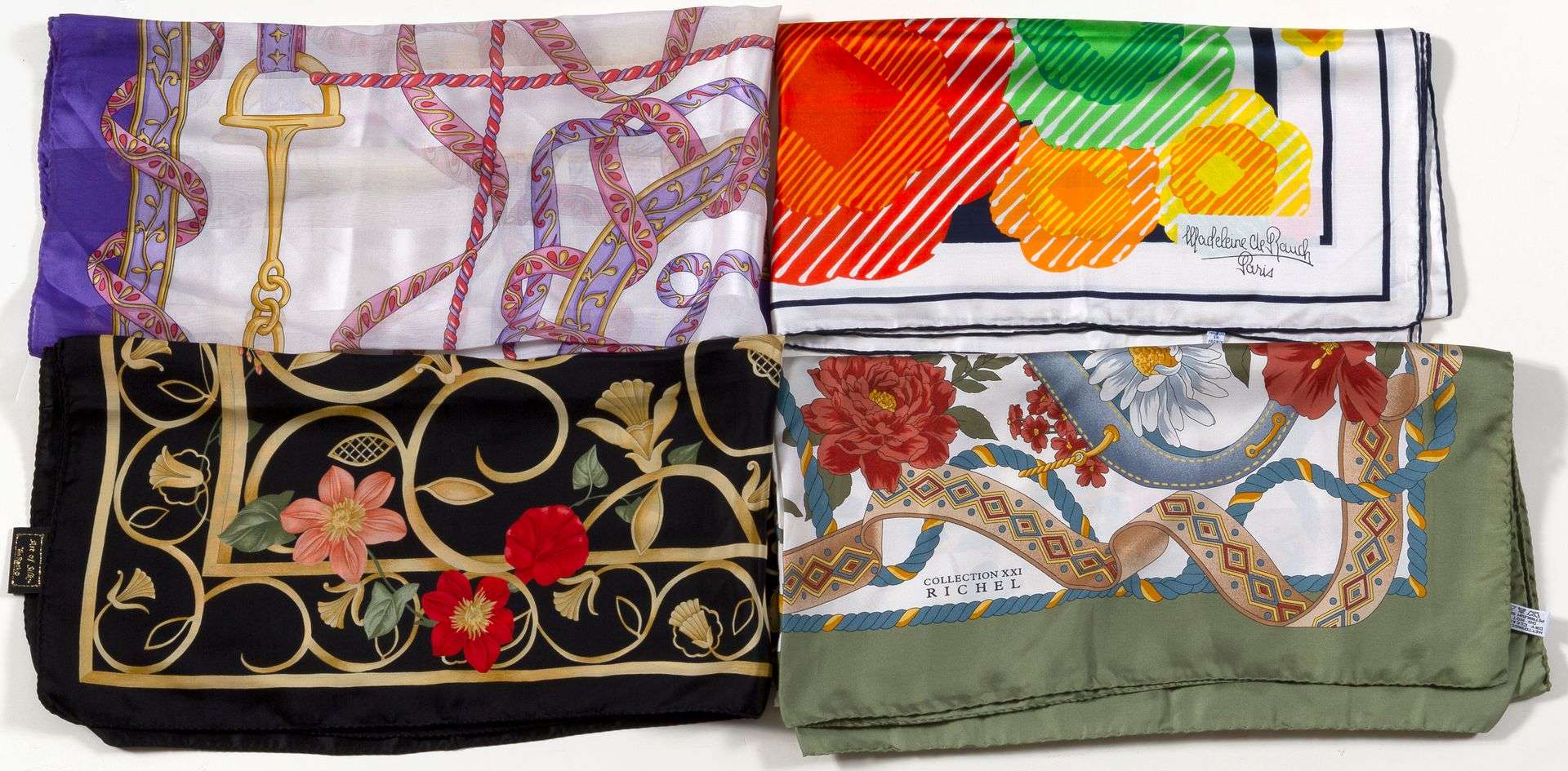- Carré en soie représentant des fleurs. Dim.: 77 x 77 cm env.