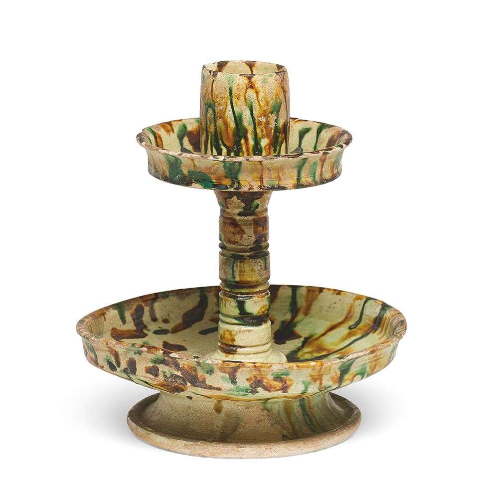 = Candélabre en grès à couverte « sancai »