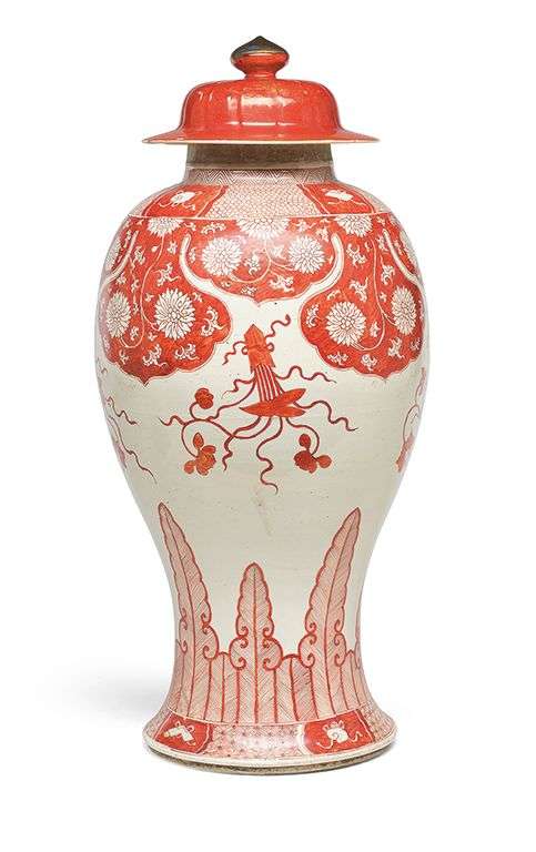 = Important vase couvert en porcelaine à décor en rouge-de-fer