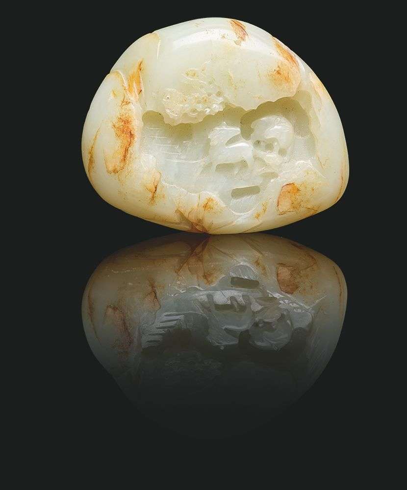 Galet en jade céladon pâle sculpté