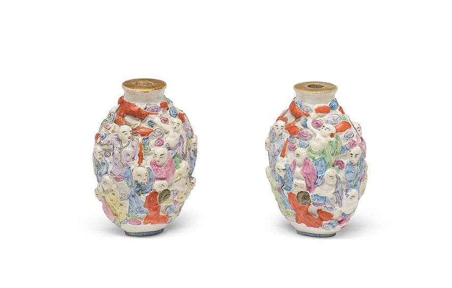 Paire de flacons-tabatières en porcelaine