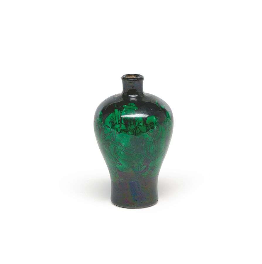 De forme meiping, la panse décorée en vert et noir des divinités du Bonheur « San Xing ».