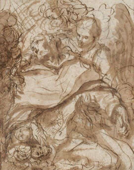 St. Dominic in Extasy, pen, brown ink, brown wash and black chalk