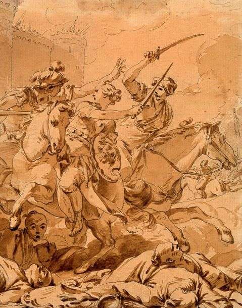 Combat d'amazones au pied d'une forteresse